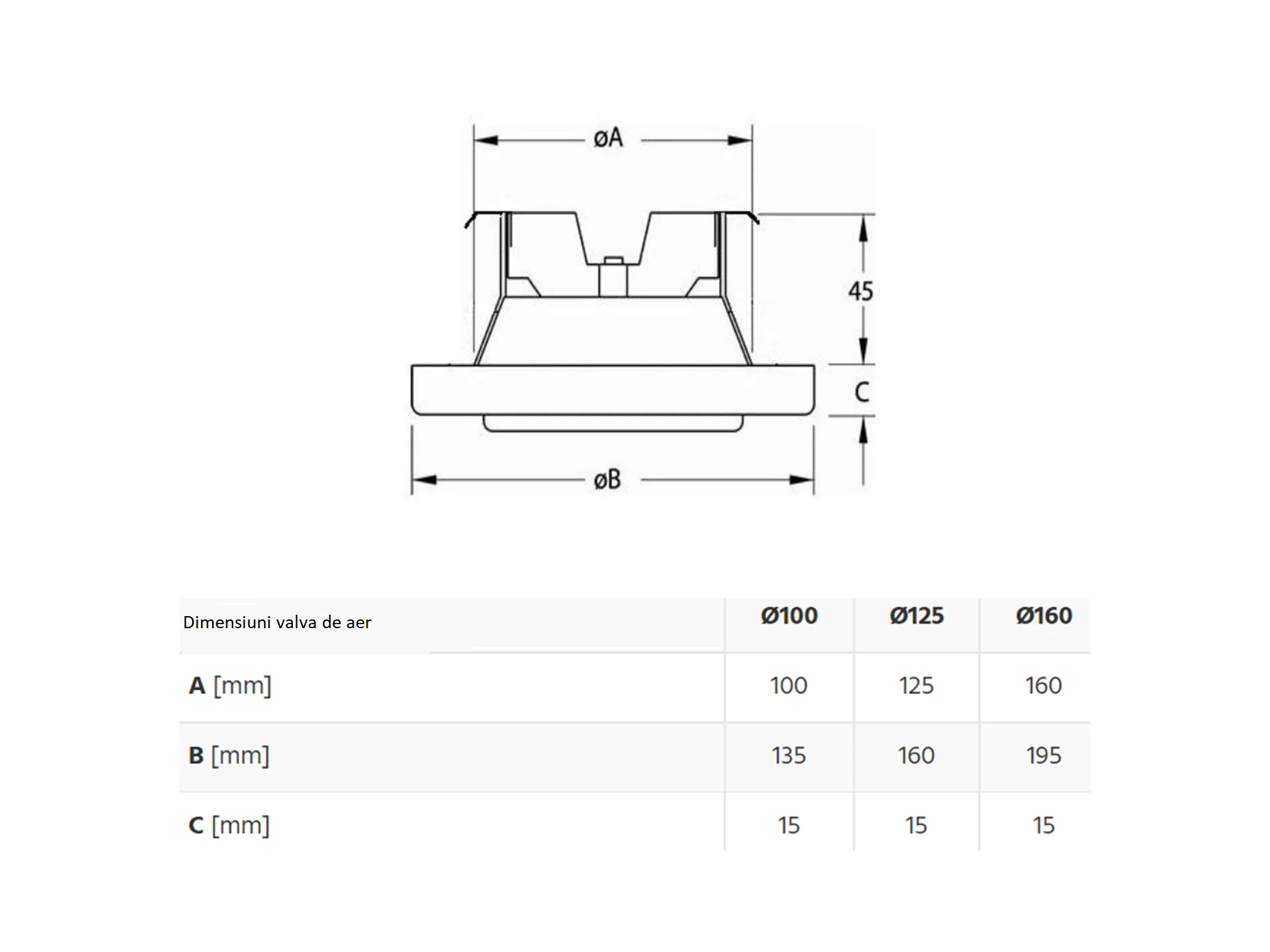 Prima pagină VENTILATIE Valva de aer anemostat de evacuare 125mm